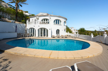 This villa is located in the peaceful urbanisation of Cumbre del Sol and offers breathtaking views over the Granadella Natural Park, the impressive cliffs of Cumbre del Sol and the Mediterranean Sea.