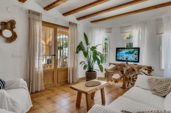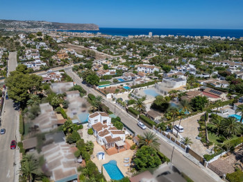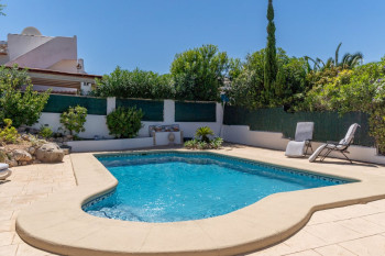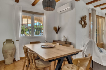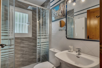 Discover this charming detached villa in the Pinosol area, featuring two entrances: one with direct access from the street to the parking area and another leading to the garden. The property includes a separate apartment on the upper floor, as well as two additional entrances to the ground-floor bedrooms, offering great versatility.