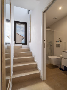 El ático se distribuye en dos plantas. En la planta baja hay un vestíbulo, un amplio salón-comedor y una cocina moderna totalmente equipada con frigorífico/congelador, lavavajillas, horno y microondas. A través de grandes ventanas correderas, el salón da acceso a una terraza cubierta. Además, en esta planta hay un dormitorio doble y un cuarto de baño.