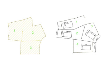 En una de las parcelas hay actualmente una villa de 297 m2, distribuida en dos plantas. Existe la posibilidad de crear un terreno edificable adicional dividiendo las 3 parcelas del sur en 4 parcelas.