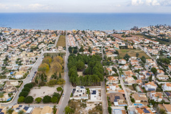 Esta villa en construcción está situada en una parcela esquinera llana a solo 650 m de la extensa playa de arena de Els Poblets.