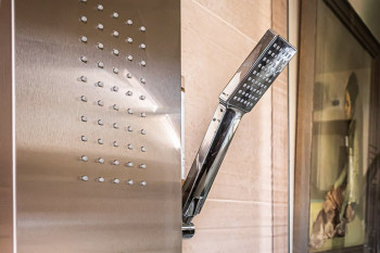 There are two spacious bedrooms, both with built-in wardrobes and air conditioning. The modern bathroom includes a comfortable walk-in shower.