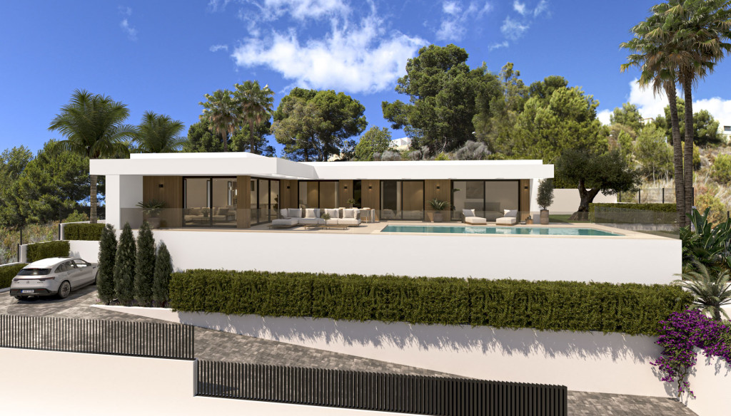 This fantastic villa is designed over a single storey and offers three bedrooms with suite-sized double beds, a spacious and bright living-dining room connected to a modern open-plan kitchen, from where large windows give access to the garden where you can enjoy the pool, two beautiful verandas and stunning views of the Rock of Calpe.
