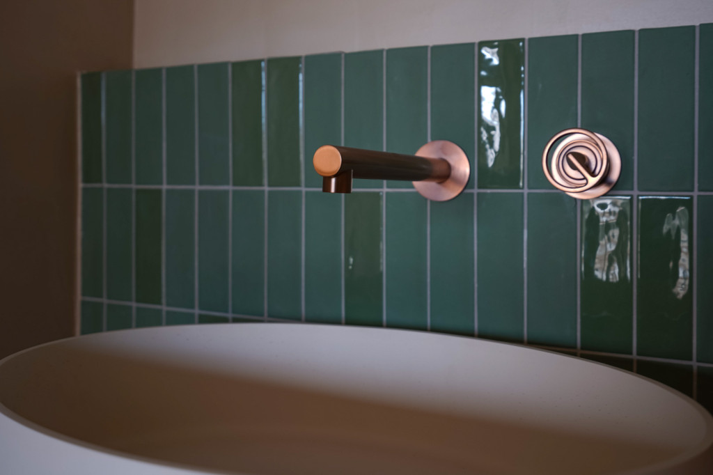 The upper floor comprises an entrance hall with guest toilet, a spacious living area with an open-plan kitchen equipped with BOSCH appliances and a BORA hob with integrated extraction, combined with custom-made cabinetry and porcelain worktops by RAGNO Italia. There are also two bedrooms, each with its own en-suite bathroom, ensuring maximum comfort and privacy. The lower floor houses a separate bedroom or studio with en-suite bathroom and the option to install a kitchenette, making it ideal as a guest accommodation. Throughout the living areas and bedrooms, fixed furniture and accents in MATTEO BRIONNI clay, solid oak doors and built-in wardrobes create a warm, natural atmosphere. The bathrooms are stylishly finished with high-quality sanitary fittings. Polished concrete floors run throughout the interior of the property, while terracotta tiles are used outdoors.