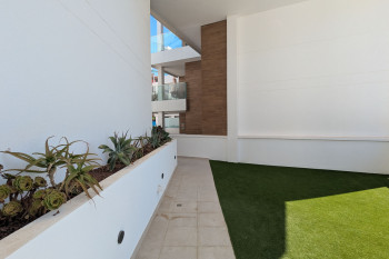 Upon entering, we find an elegant living-dining room with direct access to a large terrace, ideal for relaxing with sea views. The modern and practical open-plan kitchen seamlessly connects with the living room, offering comfort and style. The sleeping area comprises two bedrooms with fitted wardrobes and a full bathroom, as well as a master suite with an en-suite bathroom and access to another large terrace.