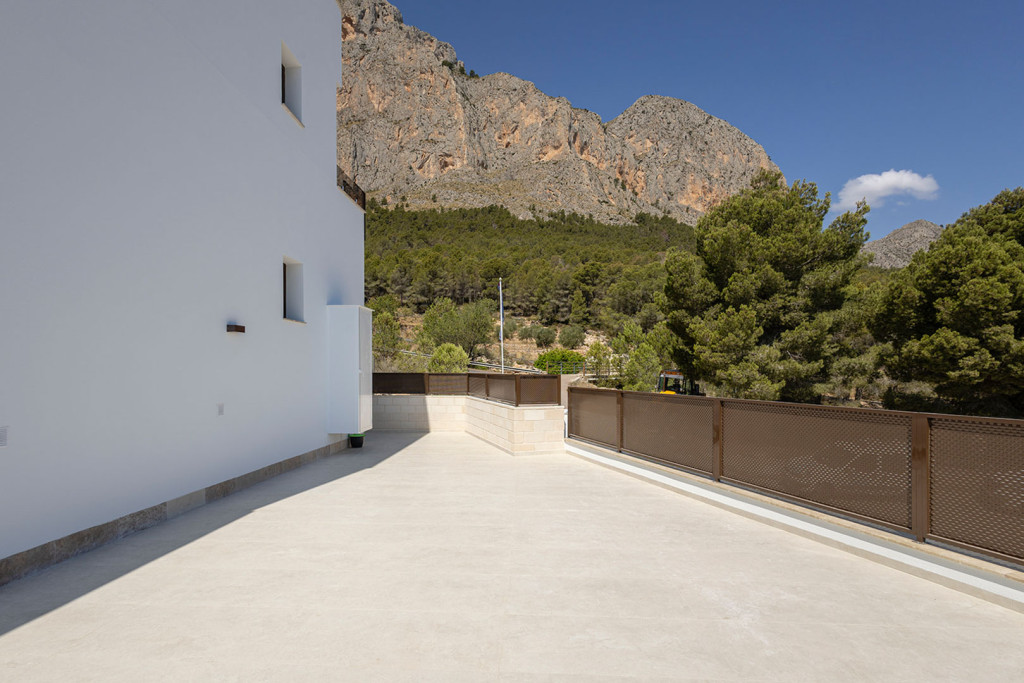 Upstairs, there are two en-suite bedrooms, each with its own bathroom and access to two terraces offering unobstructed views.