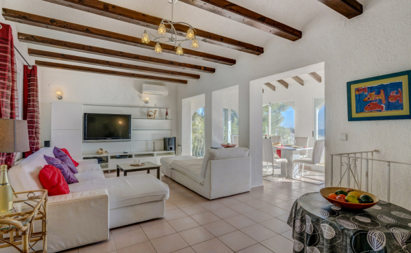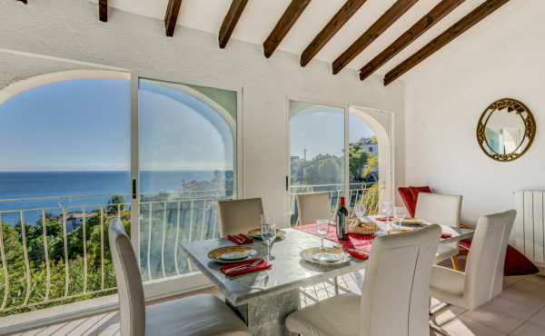A charming villa with great sea view situated in the quiet residential area of Costa Nova in Javea. Presented to a high standard internally and externally. It offers three bedrooms - one bedroom with King size bed and two bedrooms with double beds. Features include air conditioning in the living room, wi-fi internet and satelite television channels. The house benefits from beautiful sea views from the living room, dining room and master bedroom.