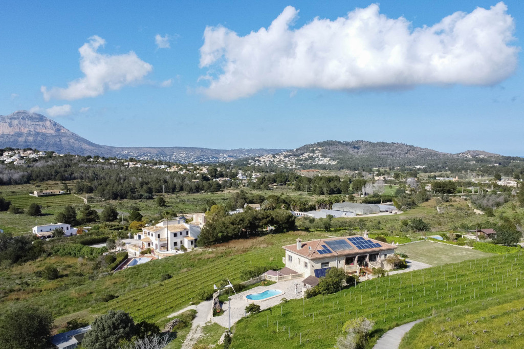 This beautiful country house is located on a plot of over 10,000 m2, centrally situated in the valley between Benitachell and the bay of Jávea. The property enjoys panoramic views over the rolling landscape all the way to the Montgó mountain in Jávea.