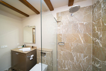 On the pool level, there is an additional bedroom with en-suite bathroom and direct access to the outdoor area, perfect for guests.