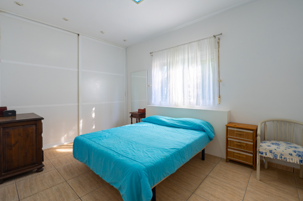 The villa is entirely on one level and comprises an entrance hall with a dining room, a spacious living room, a fully equipped kitchen, a double bedroom with an en-suite bathroom and a bedroom with a separate bathroom. The villa also features a spacious naya and a terrace. The plot also features several storage rooms and a small prefabricated house comprising a living room with an open-plan kitchen, two bedrooms and a bathroom.