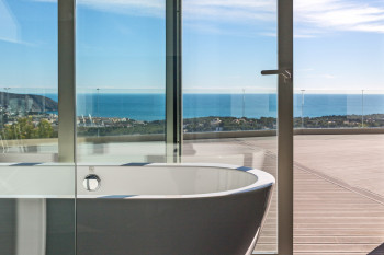 This exclusive modern-style villa stands on a plot of over 900 m², facing south to enjoy all-day sunshine and stunning open views of the Mediterranean Sea. With over 400 m² of living space and 480 m² of terraces, the property perfectly combines contemporary design, comfort, and elegance.