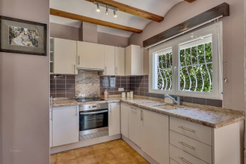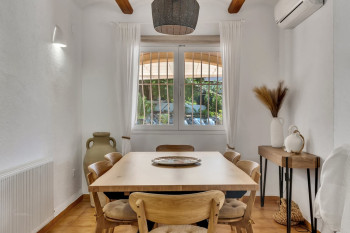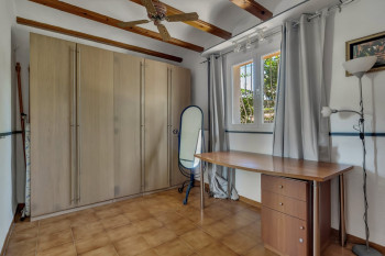 The beautiful, well-kept garden is equipped with an automatic irrigation system and a practical storage room. The villa features two kitchens (one on each floor), three spacious bedrooms —including a dressing room— and three full bathrooms. Partially renovated and in excellent condition, the home offers plenty of opportunities to add more bathrooms or suites.