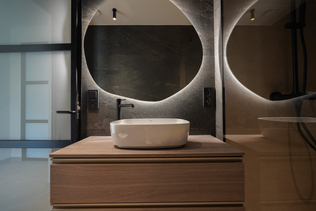 La vivienda está construida siguiendo los principios de Styro Stone: el núcleo de hormigón está aislado tanto por dentro como por fuera, lo que garantiza una hermeticidad excepcional. Como resultado, la temperatura se mantiene casi igual en todas las estancias y el sistema de doble ventilación asegura un confort óptimo. Además, la villa está equipada con un sistema de aerotermia para calefacción y refrigeración mediante suelo radiante, así como para agua caliente sanitaria. Un sistema de energía solar con 18 paneles solares y 20 kW de acumulación garantiza un consumo energético casi nulo y contribuye a obtener la certificación energética A++.