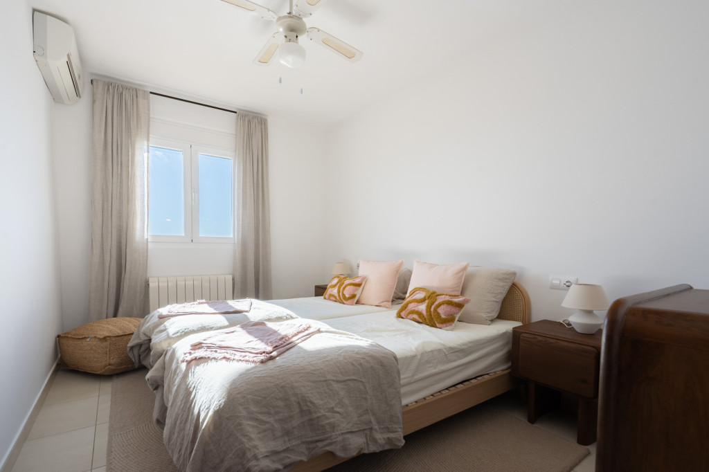La planta baja cuenta con una amplia naya totalmente acristalada, un lugar ideal para desayunar cada día con unas magníficas vistas al mar. Desde la naya se accede al salón, que da paso a una cocina semiabierta. Para mayor comodidad, la cocina tiene acceso directo a la zona exterior. En esta planta también hay dos amplios dormitorios dobles y un cuarto de baño.