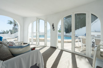 Esta villa está situada en la tranquila urbanización Cumbre del Sol y ofrece impresionantes vistas al parque natural de la Granadella, a los imponentes acantilados de Cumbre del Sol y al mar Mediterráneo.
